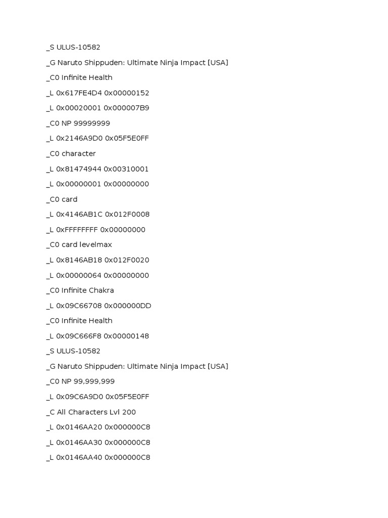Naruto Shippuden Ultimate Ninja Impact Cwcheats Just For Information